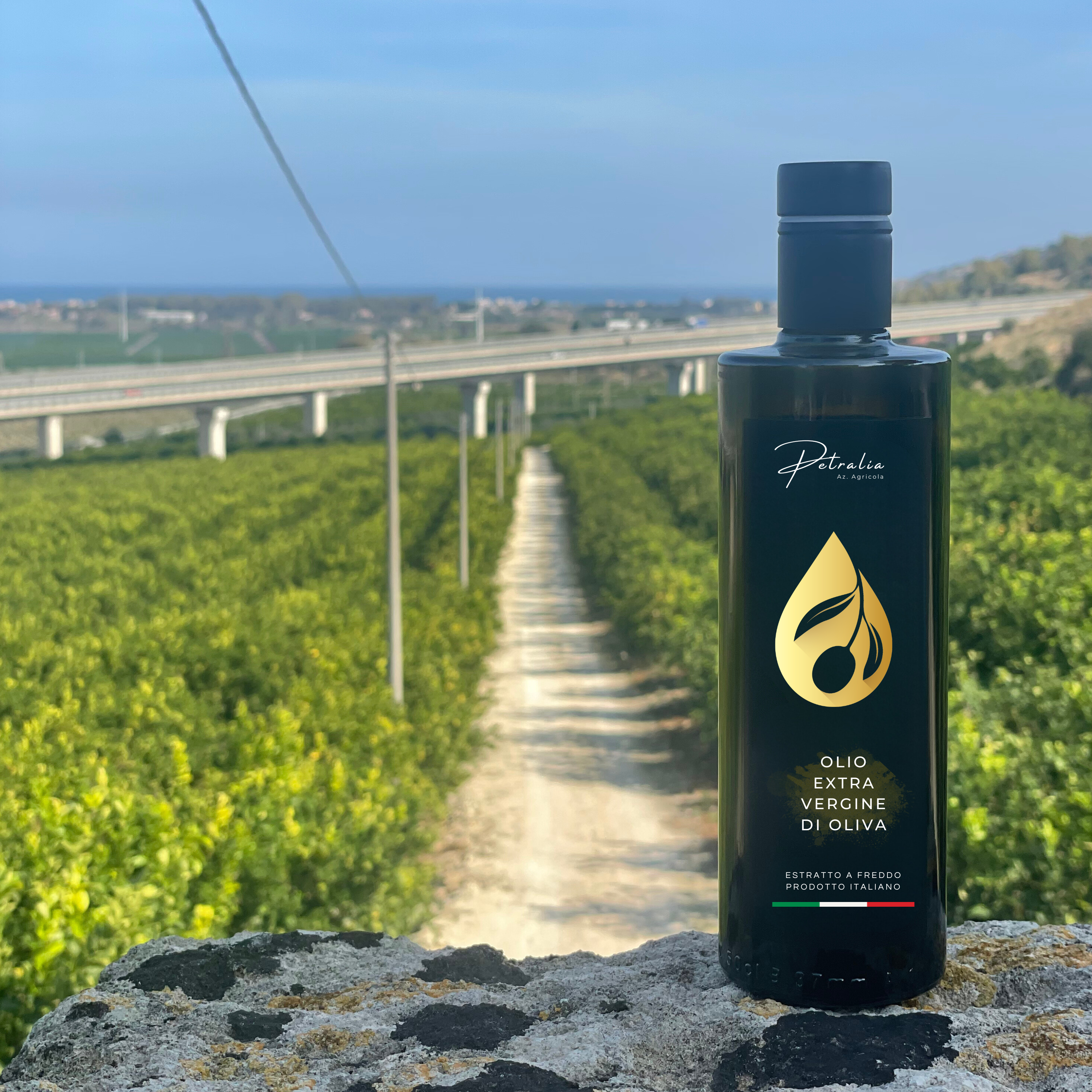 Olio extravergine di oliva Siciliano, disponibile in confezione da 6 bottiglie.